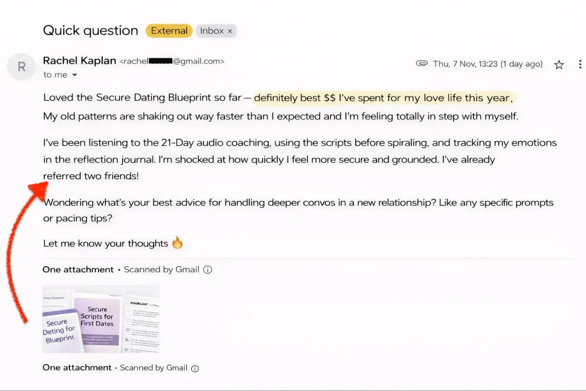 Result: “I didn’t spiral once when she pulled back — I felt secure.”